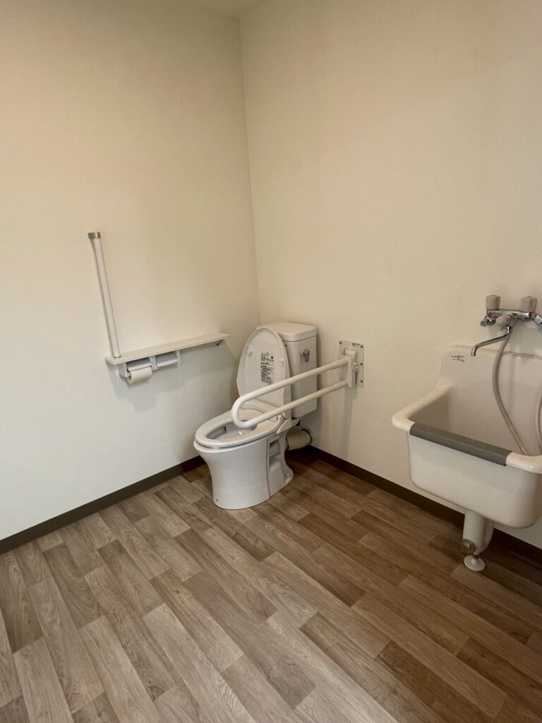 一か所は車椅子の方も利用できるトイレをご用意しています。